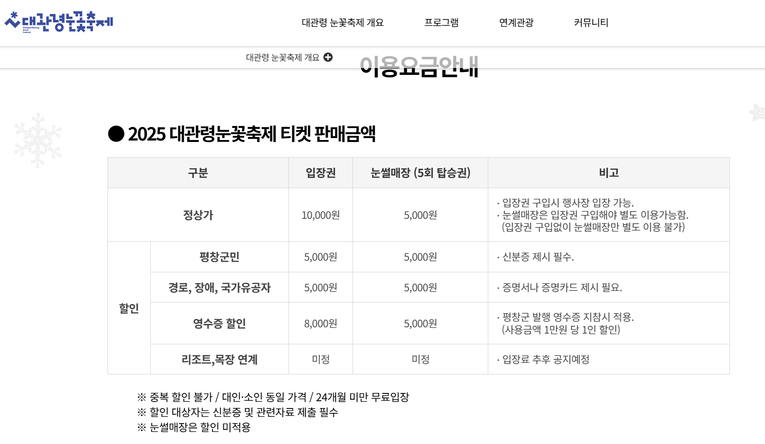 - 입장료: 대인/소인 10,000원 (평창군민 할인 요금 5,000원)