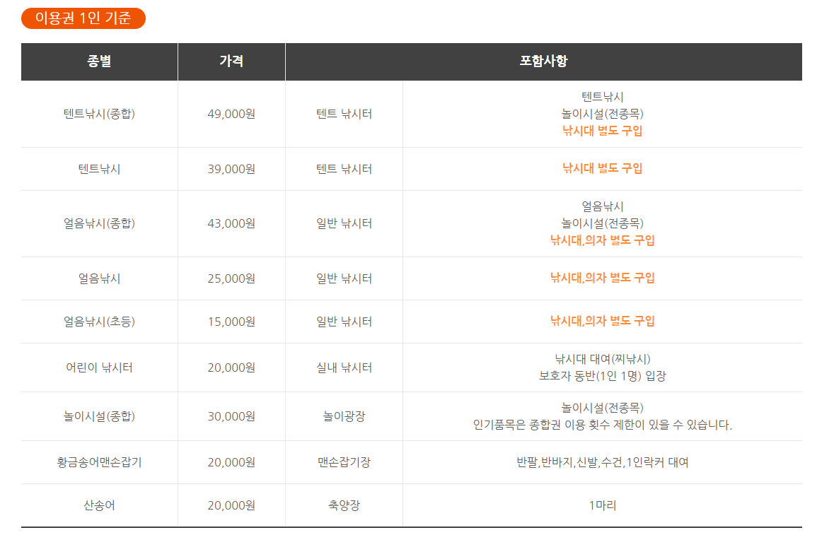 - 얼음낚시, 황금송어 맨손잡기 등은 현장에서 발권 가능.